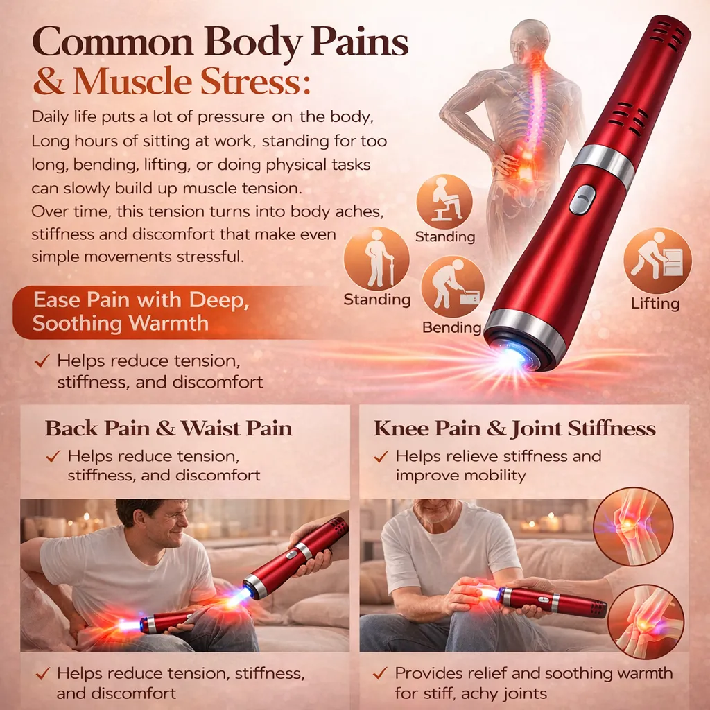 This is not just another household gadget. This is a powerful home therapy device that uses special heat technology to penetrate deep into your body, helping to relax tight muscles, ease joint stiffness, and bring real comfort to painful areas.